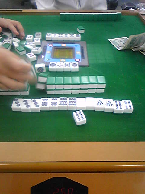 待ちが異様に広いわけだが、ロンあがりはできない。というのもすべての牌で和了れるということは、自分の捨てた牌すべての牌で和了できることに他ならない。つまりフリテンなのである。唯一の例外はまだツモ番が来ていない状態で、そこでロンすれば人和となる。 「無限単騎」でリーチを打ったら絶対に一発ツモがつく。と言いたいところだが、白マイティサンマではフリテンリーチは認められていない。「無限単騎」でのリーチは禁止である。 そもそも「無限単騎」、つまり何でも和了できる形というのは前順で和了している形である。和了形から雀頭が白含みで、白ではない方を切れば無限単騎が出来上がる。逆(数学的に対偶)を返すと普通に打っていれば(シャンテン数を戻すような打ち方をしなければ)「無限単騎」になることはない。 意外に扱いにくい「無限単騎」だが、防御力が異様に高いのも特徴である。「無限単騎」はロンは許されないが、ツモは許される。「無限単騎」状態で他家から攻撃が入ったとしても次順のツモ牌で和了っしまうことが出来る。本来攻撃的である白も「無限単騎」だとむしろ防御に有効だと言うのが面白い。 先日、とある漁師町に初詣に行ってきた。朝6時半というかなり早い時間に執り行われる祭りであった。 この祭りのメインイベントは「金品まき」である。高いところから金や餅、菓子をまき、亡者どもがそれを拾うという行事である。まかれた金品に群がる姿の浅ましさは異常。中には「餅じゃなくて金投げろ」と言うガキまでいた。 他にも焼魚、餅、味噌汁をふるまう場所もあった。当然のごとく並ぶわけだが、列なんてあって無いようなもの。スキあらば前の人を追い抜かし、「横入り」も横行していた。 それら食品のゴミについてだが、それもすごい。ゴミ捨て場は一応何ヶ所かあったのだが、遠いところにあるものはスカスカなのに、一番近いところのものはゴミであふれかえっていた。少し歩けばきちんと捨てられるのに、亡者にはそこまで気が回らなかったようである。 なんと民度の低い町であろうか。正月早々嫌なものを見た。 大晦日。夕方まで仕事があり、さらに年明け0時から初詣。その間6時間ほど空白の時間があった。寝るのも何だし甲府へ出向いた。やることはクイズと麻雀。役満的には前回小喜和を和了し、そこでおわれば良い終わり方なので、役満に注意しつつ打った。 で、最後の半荘。トータル5000円浮きくらいあったので、さらっと流して打っていた。3位で迎えた南3局。オーラスに親が残っていたので南3南4で2位くらいまでになれば良いかななんて思っていた。親は上家のメンバー。配牌の直後に後ろで見ていたメンバーの方を見出した。「そんなことしてないで早く切れよ」なんて思ったが、「ツモ」と発声した。天和である。あ~あ…。2009年最後の役満は天和かぶりかよ…。気をつけて打っていたが、包茎は防ぎようがない…。 この日は1-1-2-0で+2400(場代1000)。年間成績は53-55-51-46で+59300円(場代76250円)。去年は59半荘しか打たなかったが、今年は205半荘。だいぶ打ったな。成績的にも大きく勝ってて、まぁ良い一年だった。最後の天和を除けば…。 最近I氏は動画編集に凝っている。先日もこんな動画を作ってニコニコに上げていた。 コメントもいくつかついている。「サンマのくせに切るの遅い」というのがあるが、それは違う。先ヅモしていて前の人が切るのを待っているのである。I氏が「大山は配牌取るのが遅い」なんて言っているが、それは嫌がらせのわざとである。 さて1分過ぎのコメントに「エレベーターゾーンに手牌を置くな」というコメントがついていた。俺の手牌で、確かに置いている。これは反省せねばならないと思った。 メンバーをしていないと、こういう事に注意してくれる人がいない。アンテナは常に高くしておく必要がある。