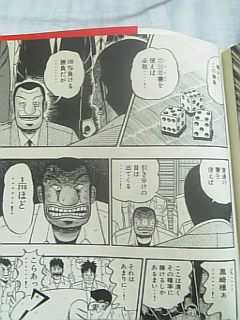 しかし直後点数表示を見て見たら10万0100点になっていた。それを問いただすと実は俺が入る何半荘か前に100点棒がなくなって店から補充したということがあったらしい。つまり落ちていた100点棒は誰のものでもなかったということである。 にもかかわらず、何の疑いもなしに自分の点箱に入れるふてぶてしさは素晴らしい。最近の自分の考えに「ずうずうしさは麻雀に必要な能力の一つ」というものがあるが、そのオヤジはさぞかし強い雀士なのだろうと思う。 PR カイジのピンゾロサイに対して大槻が普通のサイコロで挑む際、黒崎が「引き分けに持ち込める確率は1/216」と言っているがこれは誤り。引き分けになる事象は「1回目でピンゾロ」+「1回目に目無しで2回目にピンゾロ」+「1回目2回目ともに目無しで3回目にピンゾロ」なので、1回振ったとき目無しになる確率pとすると(1+p+p^2)/216となり1/216よりも大きい。 ちなみにp=1/2なので(計算は省略、近いうちにやります)(1/216)*(7/4)で0.81%である。1/216は0.46%なのでちょっとは上がって良かったね。 追記 チンチロ編の敵役は大槻のほか石和というのも出てくる。どちらも中央線の駅名にあり特急「かいじ」の停車駅でもある。関係あるのかな?
