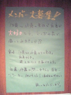 パチンコの場合控除率が1%しかないため27兆4550億円のうち27兆1804億5000万円は客に返しているからな。実際に業界に入る金額は2745億5000万円だけである。 パチンコ業界のやたらでかい市場規模のからくりはココ。 3-1-0-0、+6500、場代1200 サッカー観戦のために前日に柏入り。深夜、やることがなかったらそりゃ麻雀だな。稲葉と行ってきた。5年位前に一度来ていて新規ではなかったが、稲葉を紹介したということでサービスを貰った。新規=ゲーム券5枚(有効期限1ヶ月)、紹介=現金1000円だったので新規じゃなくて良かった。 しかし会費1000円のメンバーズカード半強制的に加入させられ相殺。このカード、ポイントをためると現金のキャッシュバックがあるが、1日だけではたまるはずも無く丸損。カードを持っているだけで店内の食事メニューが1日1品食べられるということで、ビール(500円)を頂いた。とりあえず500円だけ元を取っておいた。 ルールは普通のアリアリ面前祝儀で特に変わったところはなし。卓はジョイナビ。 この日、立ち飲み屋に行った後だし、ゲーム中にビールを飲んでたりしたけど、大きく勝った。とにかく先制リーチを掛けられた上に誰も向かってこなかったからである。オーラスもアガ3、アガ4上等で楽だった。 ところでトイレに写真のようなメンバー募集の張り紙がしてあった。年齢制限があって25歳までらしい。稲葉ともうメンバーすら出来ない年になったんだな、、、なんて話した。