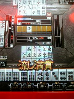 前回モメた客と同卓。気まずいかなと思ったが、相手は覚えていなかったらしく、また僕もスタートを押さないようにしたので和やかに過ごせた。ホント良かったよ。 さてプレイ内容、。とにかく両面が入らなかった。配牌「34p12799s347m西白発」から25p,25sなどがなかなか入らず、もどかしい局が多かった。ちなみにこの後「33445p99s西西西444m」となりリーチ→流局(ドラ2p表示の3p)。9sと4pが早い段階で枯れたので4暗刻までは無理だったが、両面リーチもダメで、正解は七対子だったようだ。 まぁ負けたけれど、気持ちよく遊べたから満足。