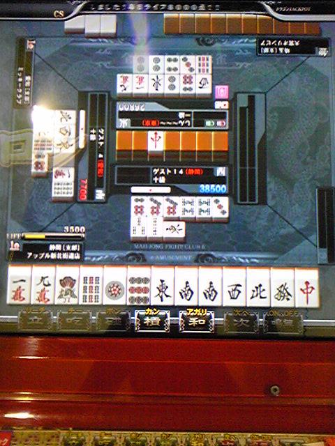 宝石試験のためQMAの深夜プレイをしに甲府へ。まだ9時台だったので夜がふけるまで麻雀。4半荘だけ打ってきた。対戦プレーヤーはメンバー+初めて見る2人。年は俺よりだいぶ上っぽい感じで、初心者じゃなさそう。この日も2卓立ってたし、新規客が増えているところを見ると、だいぶ繁盛しているようだ。